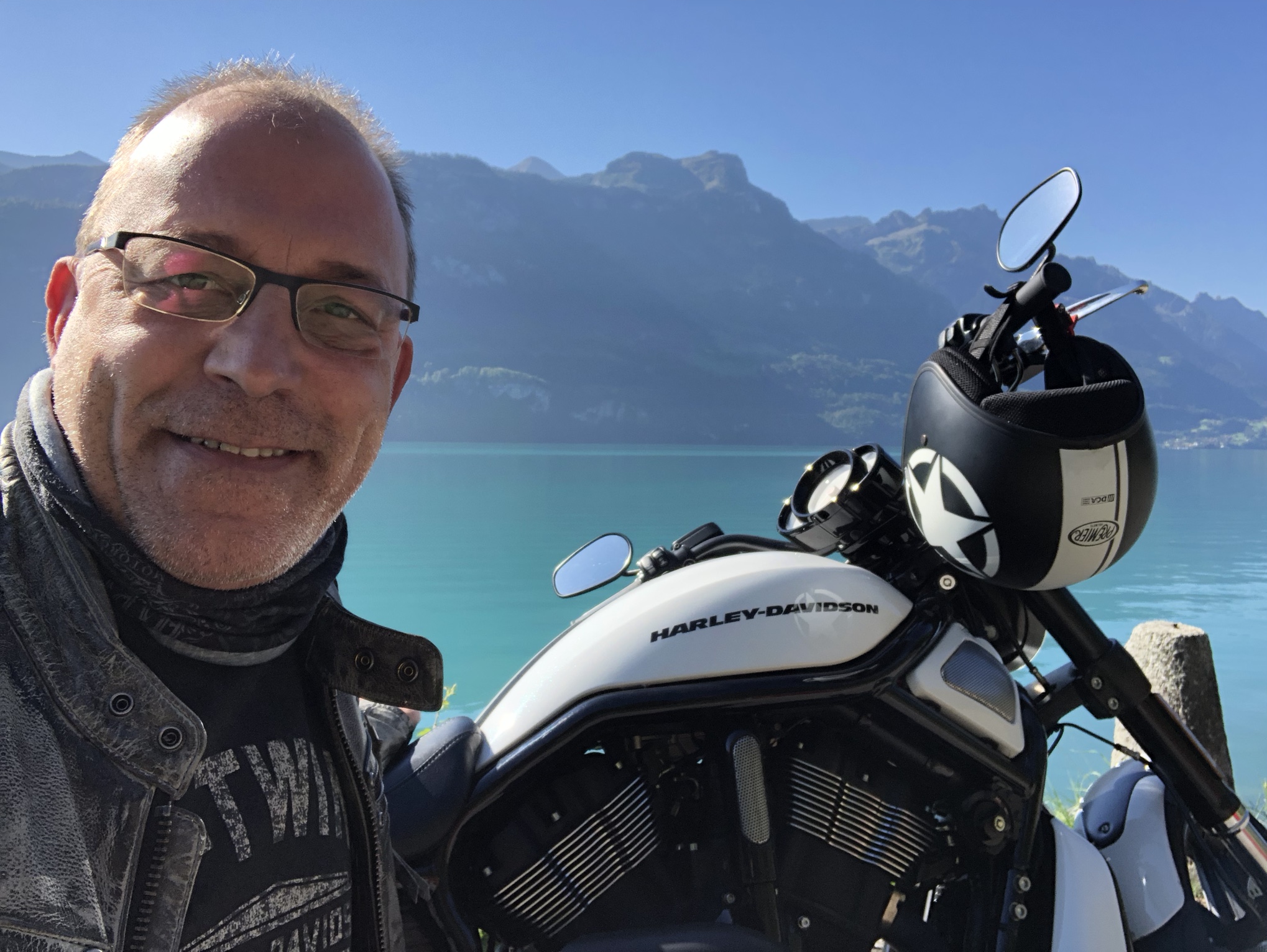 Um den Kopf frei zu bekommen sitze ich in meiner Freizeit gerne auf dem Motorrad. Wenn ich es zeitlich schaffe, eine mehrtägige Tour zu fahren, ist die BMW R1250 GS Adventure das perfekte Bike. Wenn es darum geht, gemütlich durch die schöne Schweiz zu tuckern, liebe ich den Sound und das Fahrgefühl meiner Harley Davidson V-ROD. Mit diesem Motorrad erfüllte ich mir einen langersehnten Traum.